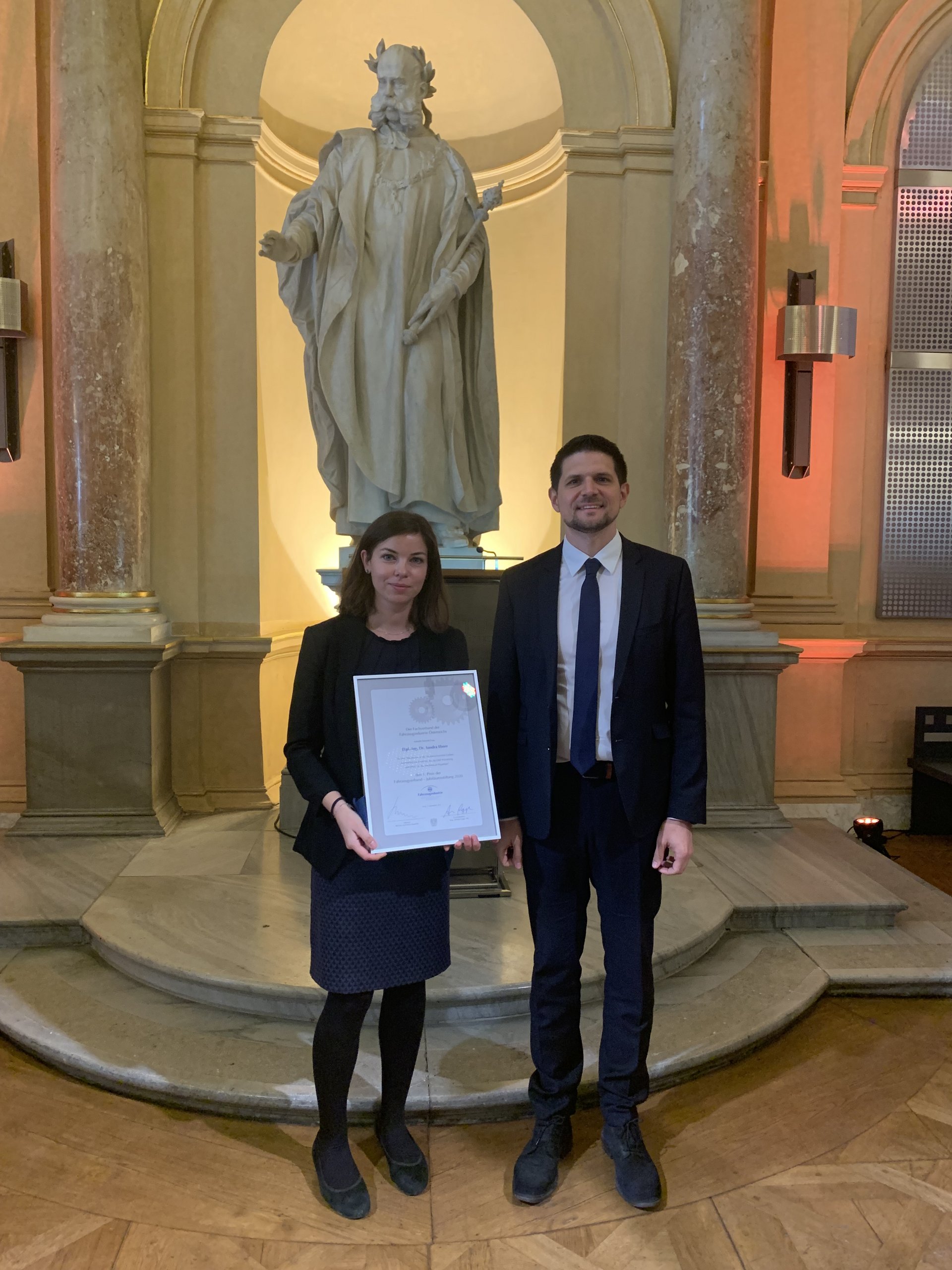 Sandra Ebner wurde für ihre Forschungsleistungen auf dem Gebiet der dritten Generation „Advanced High Strength Steels“ mit dem 1. Preis der Fahrzeugverband-Jubiläumsstiftung 2020 ausgezeichnet. Das Verständnis des komplexen mikrostrukturellen Aufbaus dieser hochfesten Stähle für die Automobilindustrie, mit dem sich Frau Ebner während ihrer Doktorarbeit am Lehrstuhl für Stahldesign beschäftigt hat, ist essentiell für eine Weiterentwicklung hinsichtlich Leichtbauweise einhergehend mit erhöhter Sicherheit. Sandra Ebners Schwerpunkt lag in der Materialcharakterisierung mittels Atomsondentomographie und in-situ Synchrotronstrahlung. Die Preisverleihung erfolgte im Oktober 2021 an der TU Graz.