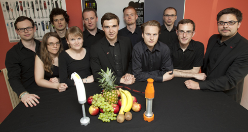 Wenn der Sommer kommt, haben fruchtige Shakes und gesunde Suppen Hochsaison. Aber auch die Mayonnaise für den Salat oder die Grillerei muss passen. „Ein Stabmixer soll langsam starten, nicht spritzen und die Zutaten nicht zu stark ansaugen“, weiß Projektmanager Alexander Pointner. Sein „Smart Mix“-Team ist eine bunt gemischte Gruppe Studierender verschiedener Disziplinen aus Österreich, Slowenien, Italien und Finnland, die sich zwei Semester lang dem idealen Mixen von Obst und Gemüse verschrieben hat.