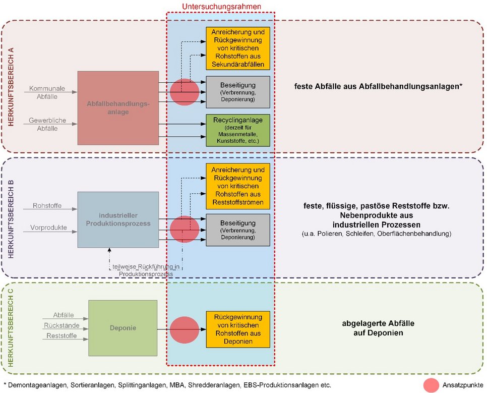 Die drei Herkunftsbereiche der Abfälle und der Untersuchungsrahmen sind in der folgenden Abbildung dargestellt.