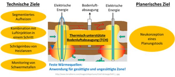 Gegenstand des Projekts InnoBLA ist die Aufheizung von Böden durch elektrisch beheizte Wärmequellen/Heizlanzen für die thermisch unterstützte Bodenluftabsaugung.