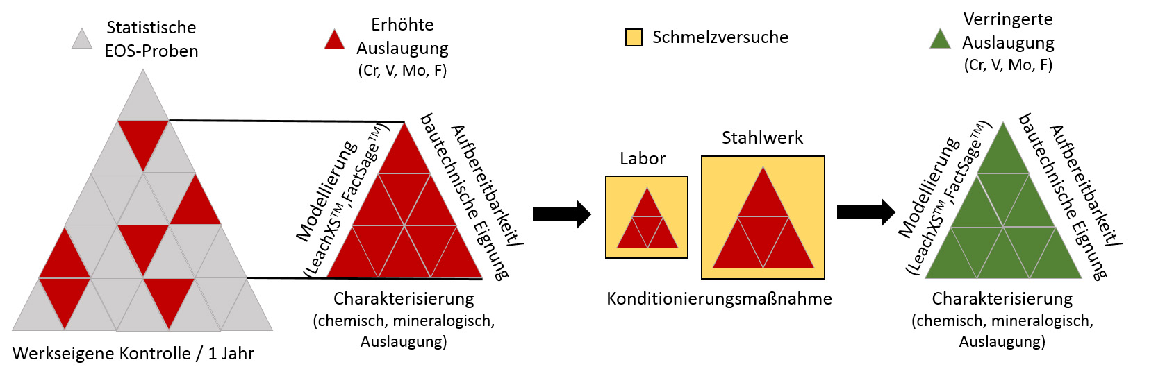 Im Projekt MiLeSlag konnten durch die Verknüpfung von Mineralogie und Auslaugbarkeit, sowohl Mechanismen identifiziert werden, die die Auslaugung von Schwermetallen aus Stahlwerksschlacken beeinflussen als auch erste Konditionierungsversuche durchgeführt werden. Im Folgeprojekt MiLeSlag 2.0 sollen diese Erkenntnisse auf einen statistisch relevanten Maßstab angewendet werden. Außerdem wird der Einfluss der Konditionierungsmaßnahme auf die Aufbereitbarkeit und die bautechnische Eignung der Schlacken untersucht. Schlussendlich soll die optimierte Konditionierungsmaßnahme im Stahlwerk umgesetzt werden.