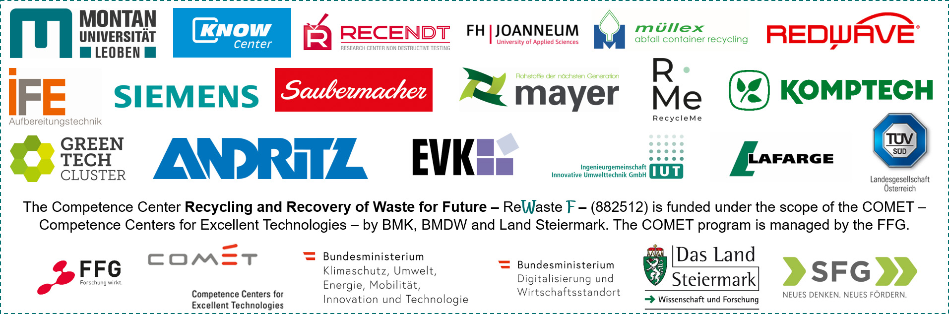 The Competence Center Recycling and Recovery of Waste for Future - ReWaste F - (contract number 882512) is funded under the scope of COMET – Competence Centers for Excellent Technologies – by BMK, BMDW and Land Steiermark. The COMET program is managed by the FFG.
