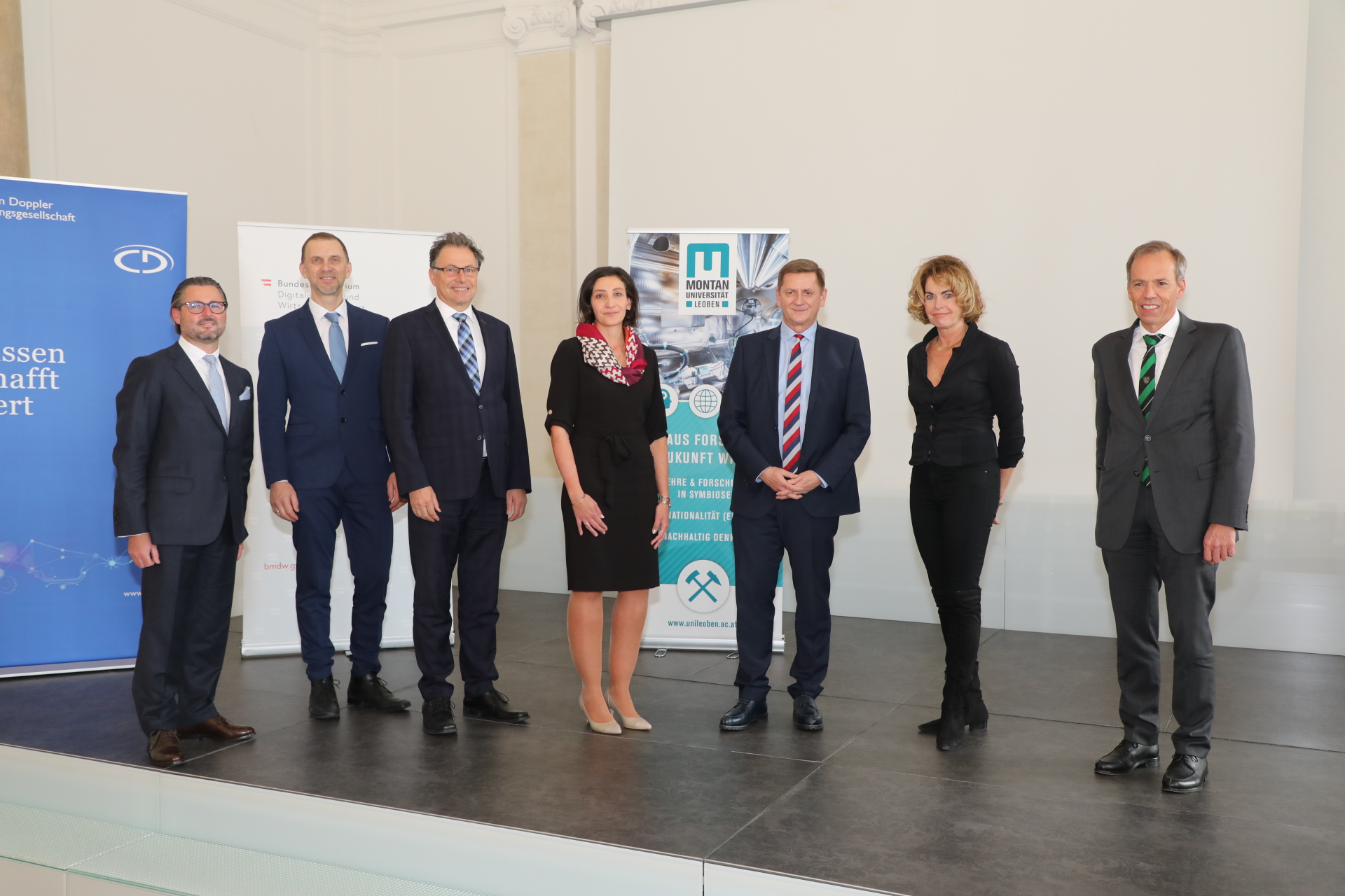 Bei der Eröffnung des neuen CD-Labors v.l.: Dr. Gerald Klösch (voestalpine), Univ.-Prof. Dr. Thomas Prohaska, Rektor Wilfried Eichlseder, Assoz.Prof. Dr. Susanne Michelic, Bürgermeister Kurt Wallner, MR Dr. Ulrike Unterer, Vizepräsidentin der Christian Doppler Forschungsgesellschaft, Univ.-Prof. Dr. Johannes Schenk (Copyright: Foto Freisinger)