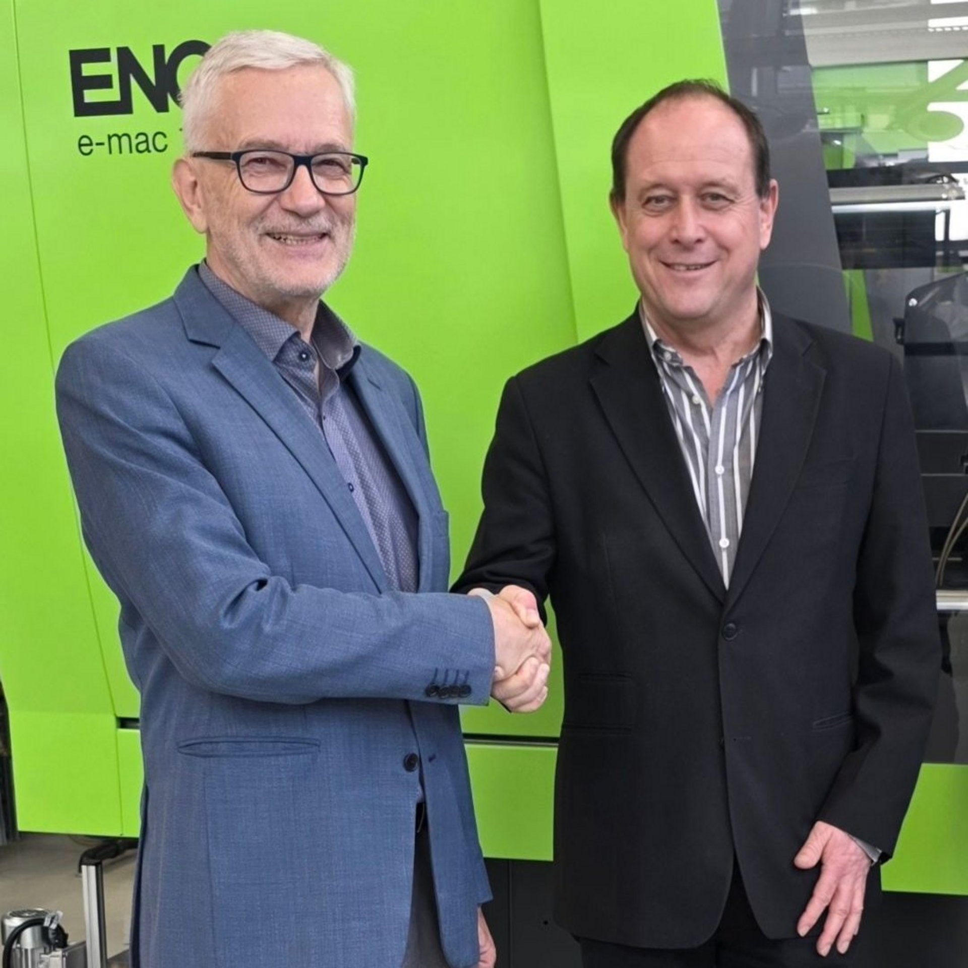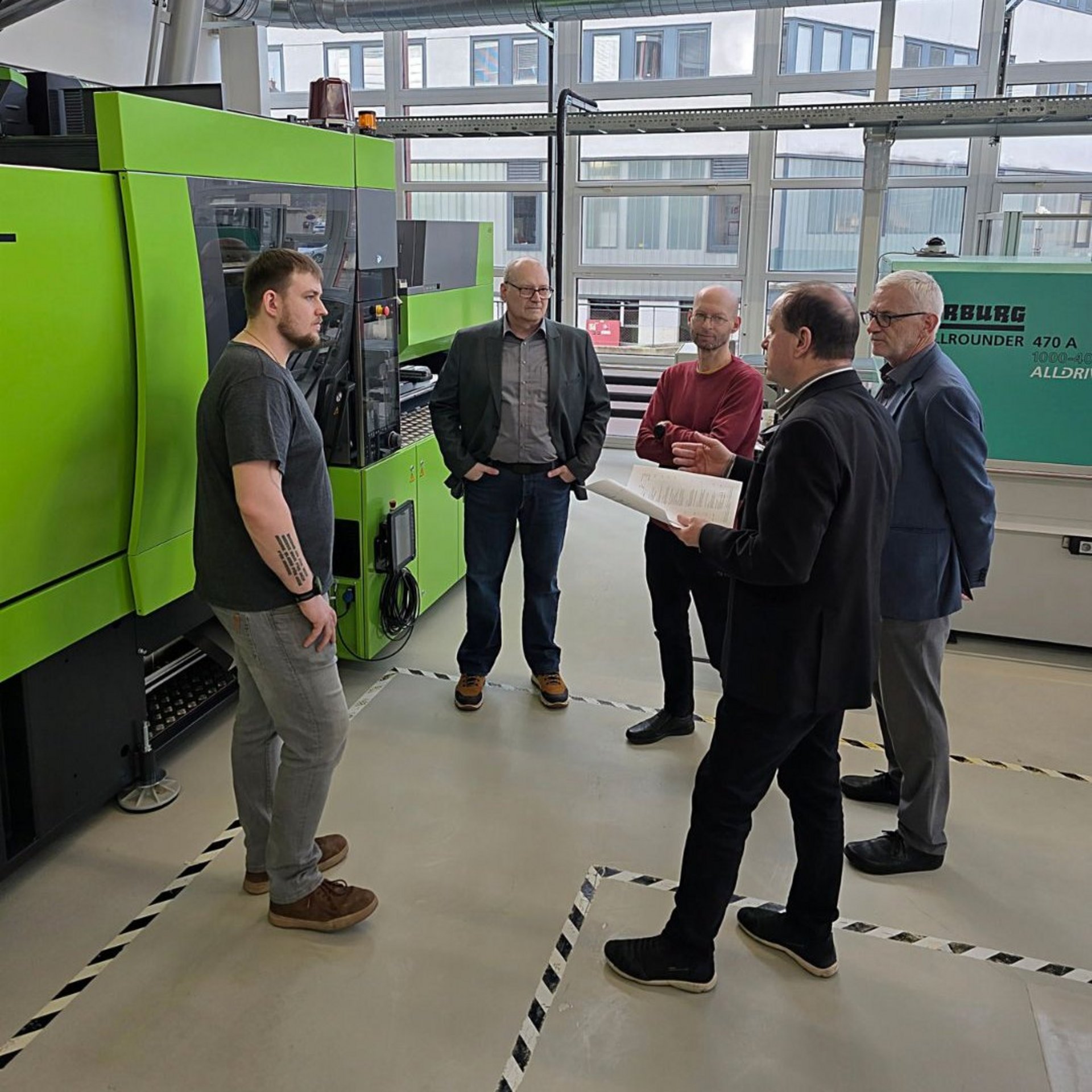 The handover was carried out by Mr. Werner Sucharda from ENGEL Austria GmbH. The machine was officially handed over with a symbolic handshake between Prof. Clemens Holzer and Mr. Sucharda.