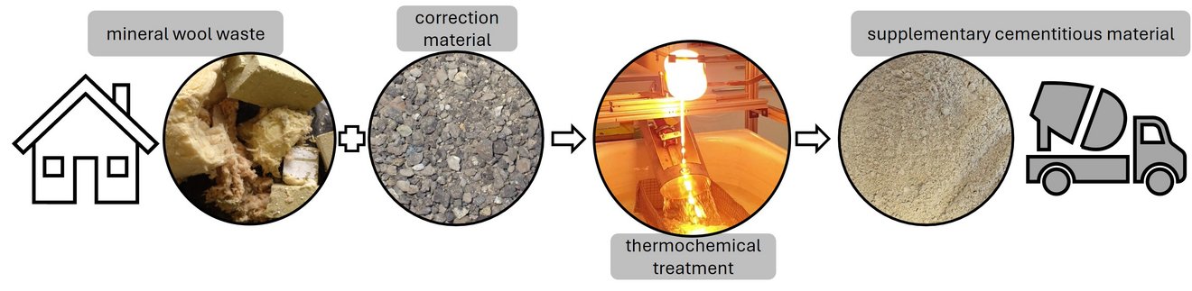 Mineral wool waste is considered difficult to recycle and is receiving increasing attention considering the upcoming landfill ban in Austria. At the same time, the availability of blast furnace slag (BFS), a key secondary raw material in cement production, is steadily declining. The BitKOIN project investigates the thermochemical transformation of mineral wool into a usable and chemically stable fraction. At the Chair of Thermal Processing Technology, the focus lies on high-temperature processes that destroy the potentially hazardous fibrous structure and enable targeted chemical modification through combination with other residues (correction materials). A subsequent wet granulation process produces a material comparable in composition and properties to BFS. The technical performance of the recycled material as a clinker substitute is assessed through laboratory and large-scale trials. BitKOIN thus contributes to the decarbonization of the cement industry and demonstrates how industrial residues can be integrated into a functioning circular economy.