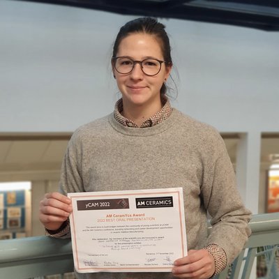 Dipl.-Ing. Anna-Katharina Hofer, Dissertantin am Lehrstuhl für Struktur- und Funktionskeramik, hat auf der Konferenz für „young ceramists in additive…