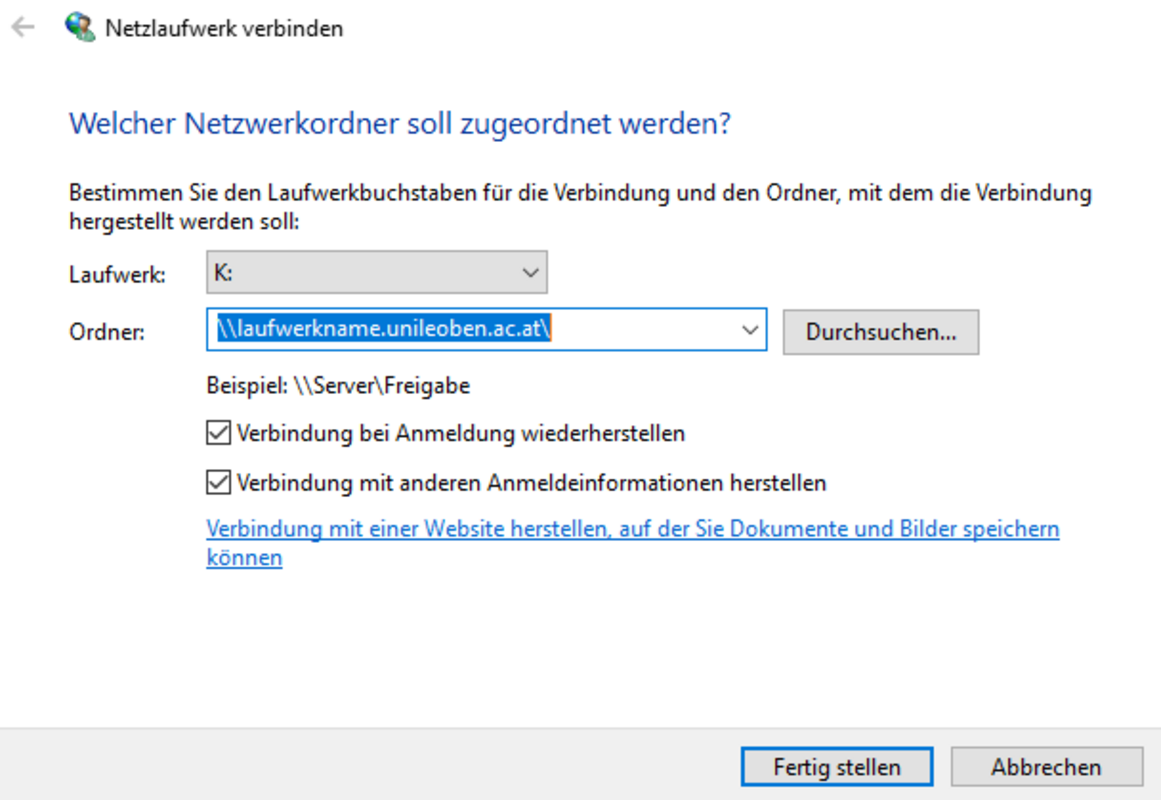 !!! Voraussetzung für das Einbinden von Netzlaufwerken von extern ist ein verbundener „Cisco AnyConnect Secure Mobility Client“!