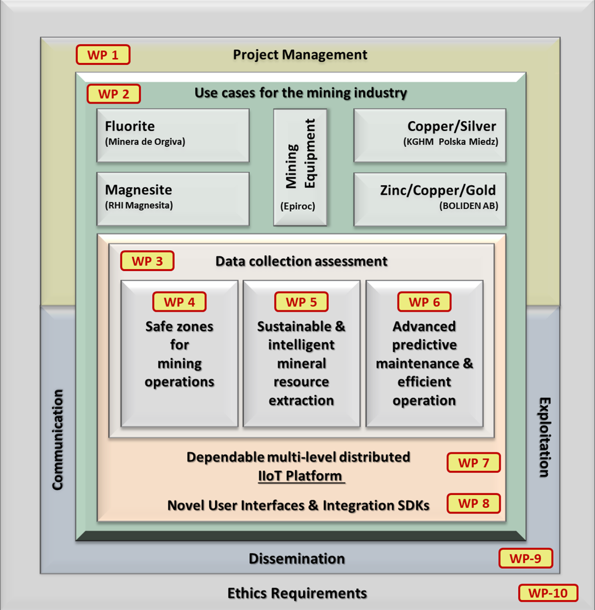 illuMINEation is structured into work packages addressing the use case definition and the specific industry needs, assessment of various sensor options for data acquisition and three application fields, i.e. (1) safety and environmental performance, (2) efficient mineral resource extraction and (3) efficient operation. Work packages dedicated to the IIoT Platform and novel User Interfaces (UIs) will consolidate, process, manage, analyse and visualise the acquired data. Moreover, there are three additional work packages dedicated to Communication, Dissemination & Exploitation, Ethic Requirements and Project Management.