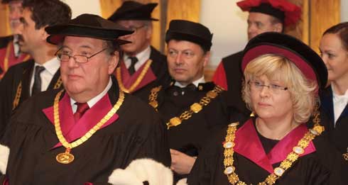 Zum Abschied erhielt Skalicky „standing ovations“ und legte Sabine Seidler die Rektorskette mit den Worten „sie ist leichter als die damit verbundene Verantwortung“ um. Diese wiederum verteilte die Amtsketten an ihre VizerektorInnen, nämlich Anna Steiger (Personal und Gender), Johannes Fröhlich (Forschung), Adalbert Prechtl (Lehre) und Paul Jankowitsch (Finanzen).