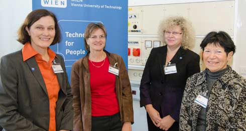 Prof. Ulrike Diebold und Prof. Silke Bühler-Paschen wurden am 31.01.2012 bei einem Pressegespräch im Beisein von Rektorin Sabine Seidler und ERC-Präsidentin Helga Nowotny vorgestellt. Die beiden Physikerinnen gewährten dabei auch einen Blick in ihre Labors.