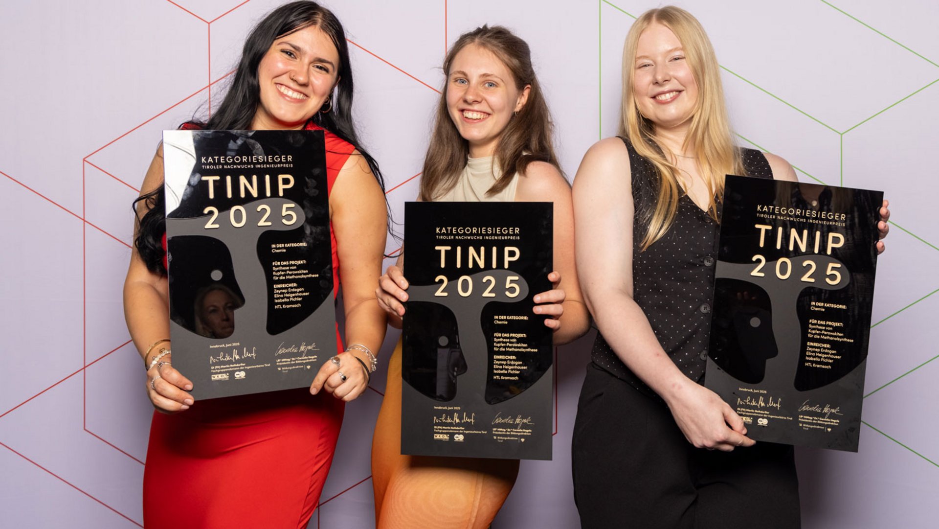 Die drei Preisträgerinnen Zeynep Erdogan, Elina Heigenhauser und Isabella Pichler von der HTL Kramsach widmeten sich in ihrem Projekt der Entwicklung innovativer Katalysatoren auf Perowskit-Basis. Unter dem Titel „Synthese von Kupfer-Perowskiten für die Methanolsynthese“ untersuchten sie das Potenzial dieser Materialien für nachhaltige chemische Prozesse – insbesondere zur Umwandlung von CO₂ in Methanol.