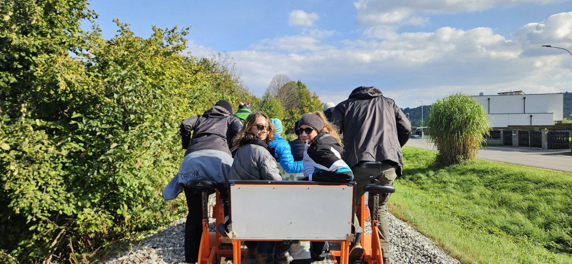 Die erste Station war eine sportlich-gesellige Draisinentour ab Neckenmarkt, bei der Teamgeist, Bewegung und jede Menge Spaß im Vordergrund standen. Anschließend ließ die Gruppe den Tag gemütlich bei einer Buschenschank mit regionalen Spezialitäten ausklingen.