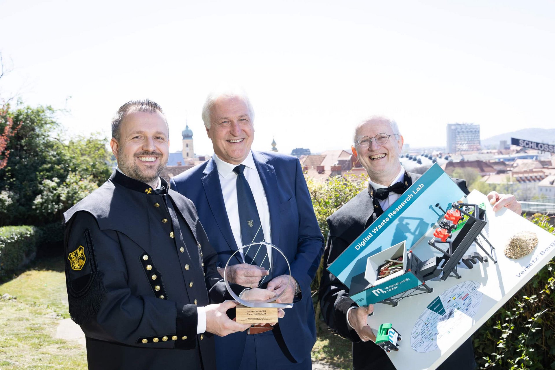 Rektor Peter Moser, Univ.-Prof. Roland Pomberger (Leiter AVAW) und Ass.-Prof. Renato Sarc (AVAW) nahmen die Auszeichnung im Rahmen der feierlichen Preisverleihung entgegen.