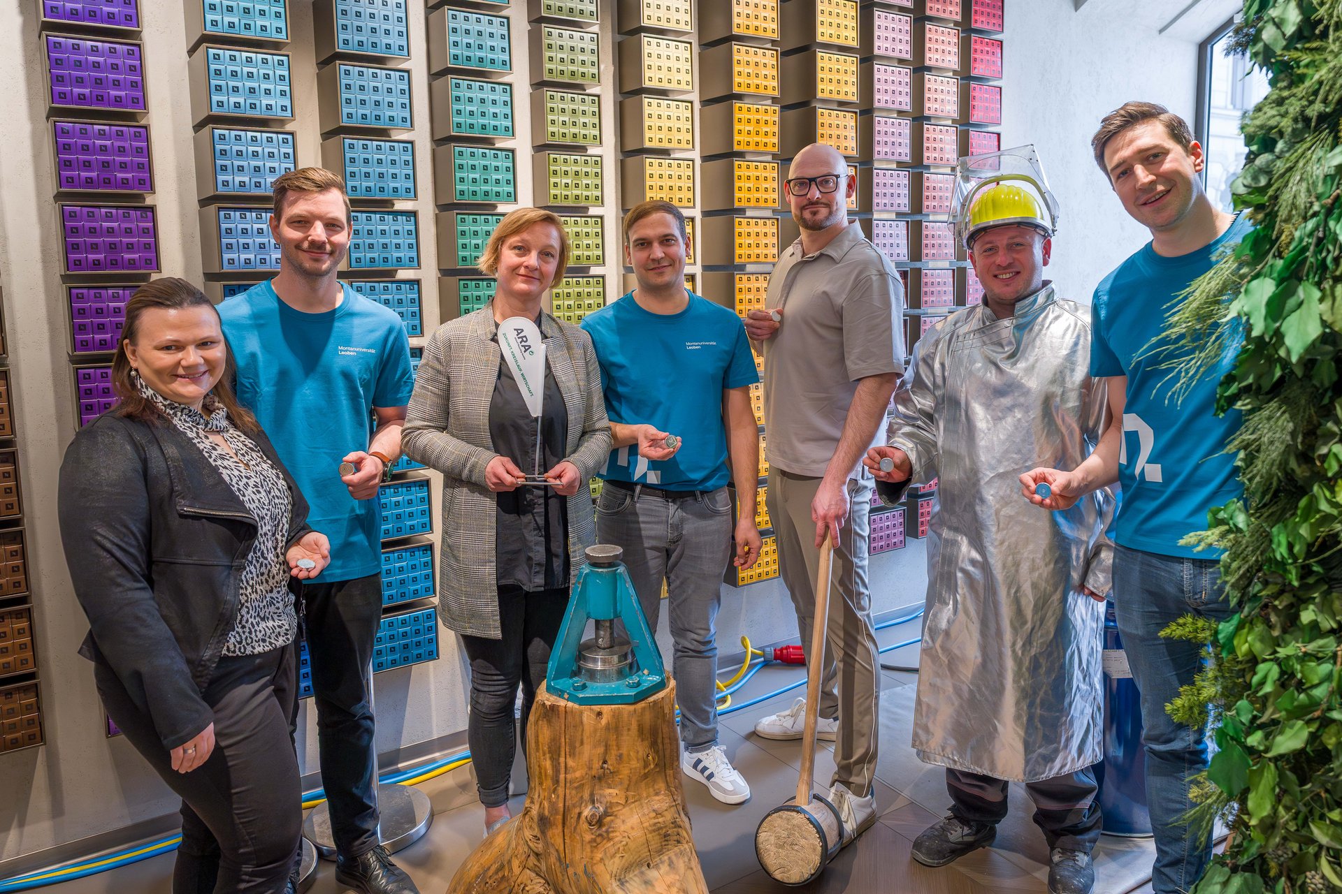 Die Live-Demonstration erfolgte in Zusammenarbeit der Montanuniversität Leoben mit der Altstoff Recycling Austria AG (ARA) und Nespresso. Vor Ort konnten Besucher*innen mitverfolgen, wie die Kapseln zunächst in einem mobilen Ofen geschmolzen und im Anschluss zu einem Münzrohling gegossen wurden. Aus diesem Rohling konnten Interessierte anschließend ihren eigenen Magneten für Zuhause prägen.