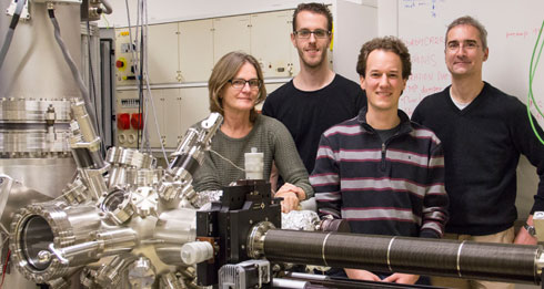 „Wir studierten Strontium-Ruthenat, einen ganz typischen Vertreter aus der Materialklasse der Perowskite“, sagt Ulrike Diebold. Es handelt sich um eine Kristallstruktur aus Sauerstoff, Strontium und Ruthenium. Die äußerste Schicht wird (wenn man den Kristall in der richtigen Richtung spaltet) nur von Strontium und Sauerstoff-Atomen gebildet, das Ruthenium befindet sich darunter, eingesperrt in eine Box aus Sauerstoff-Atomen.