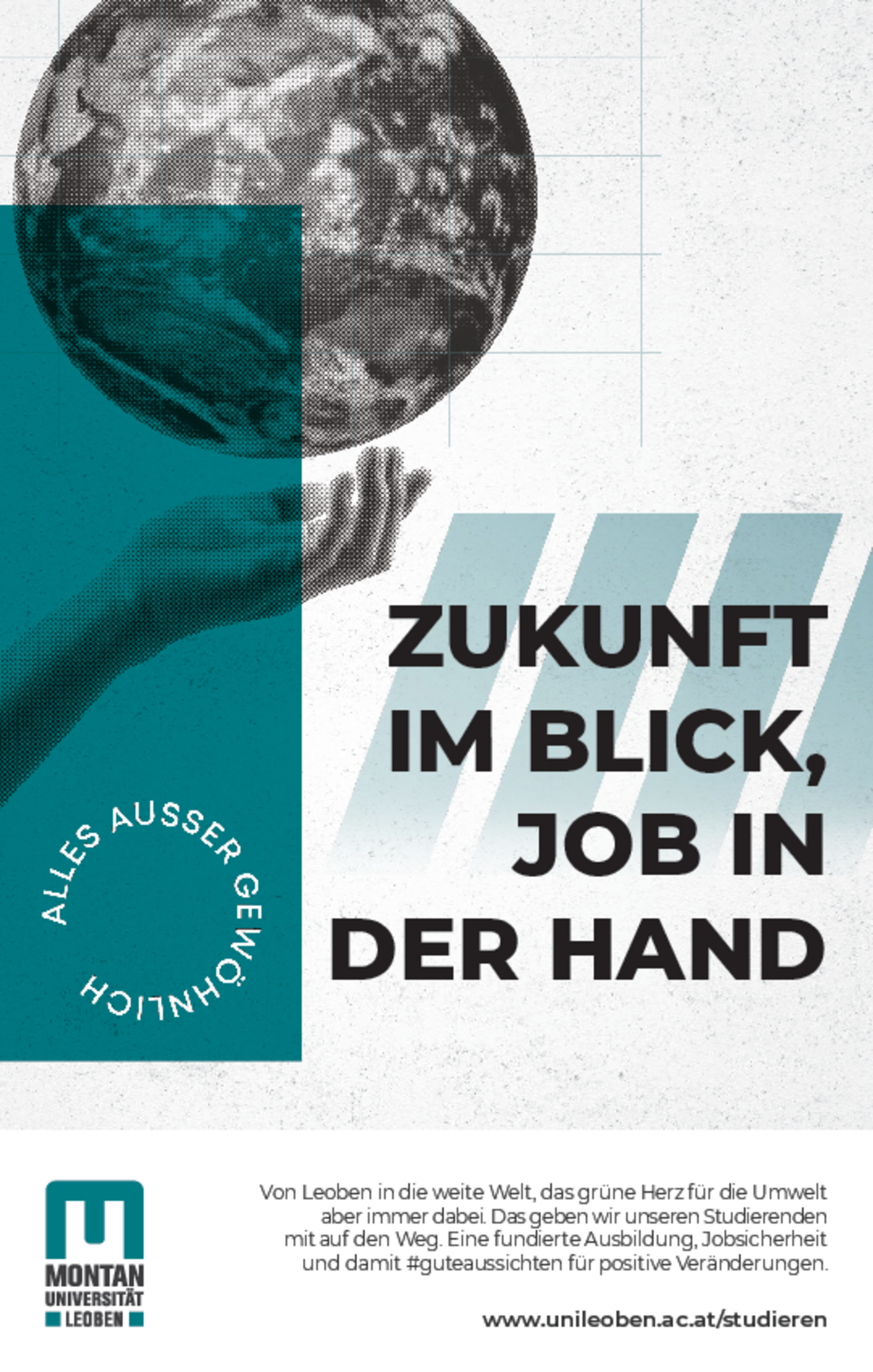 Die Montanuniversität Leoben startet ihre neue und außergewöhnliche Informationskampagne „Zukunft im Blick, Job in der Hand“ und unterstreicht damit ihre Einzigartigkeit nicht nur in Österreich, sondern auch im europäischen Raum. Unter dem Hashtag #guteaussichten bietet man den jungen Menschen zudem einen positiven Blick auf die Zukunft und mit einem Studium das Wissen, das unsere Welt ein Stück besser machen kann.