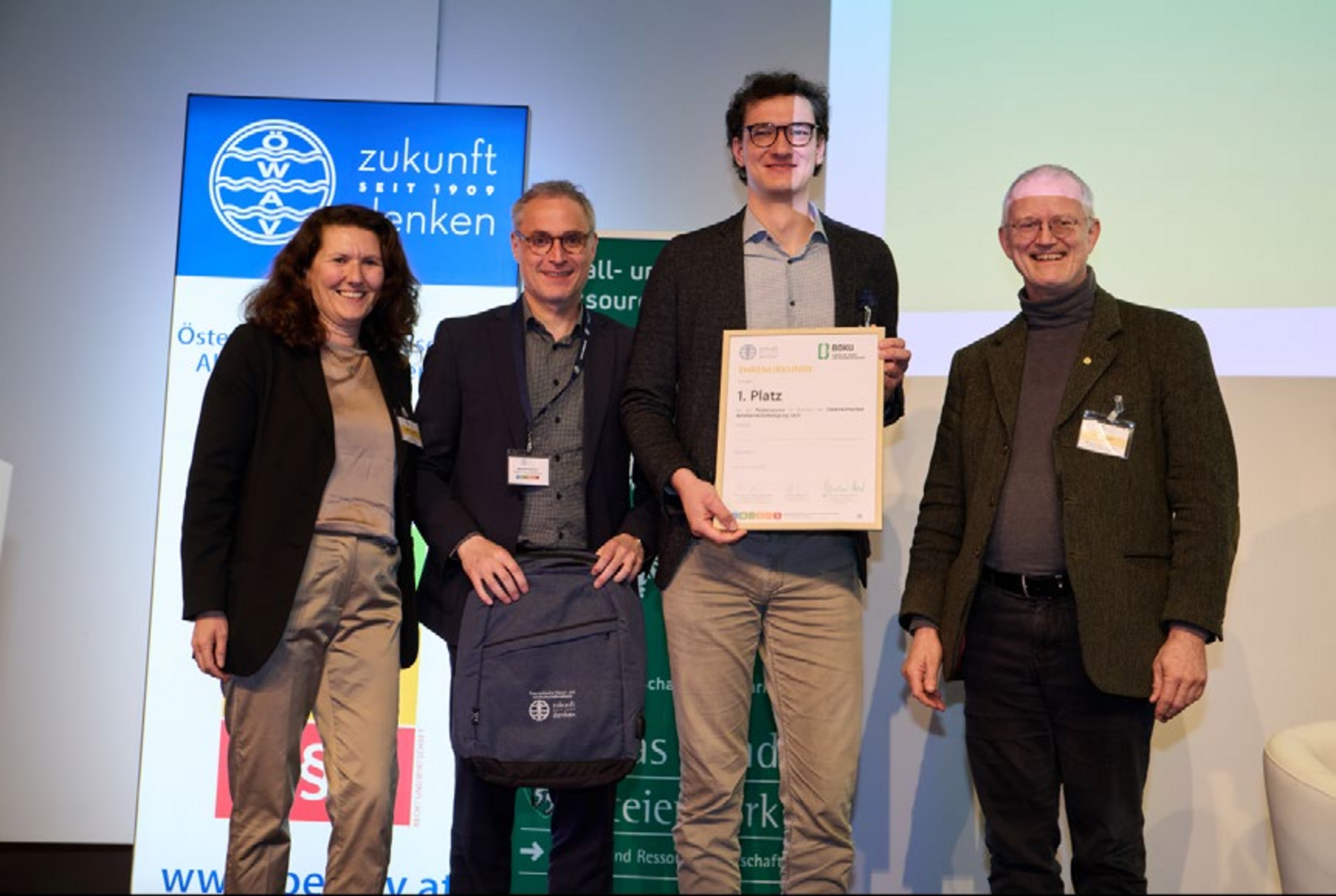 Unter den insgesamt 49 Einreichungen überzeugte Paul Demschar mit seinem Poster „Die Hochzeit der Siedlungsabfälle – Zwei Verfahren, ein Ziel – eine Innovation“ und holte damit den 1. Preis. Therese Bouvier-Schwarz erreichte mit ihrem Poster „Klimapositive Abfallwirtschaft – ein Schlüssel zu Materialkreisläufen?“ den 3. Platz.
