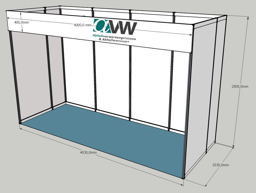 - Messestand mit den Maßen 4,0 x 1,5 m (Höhe 2,5 m)