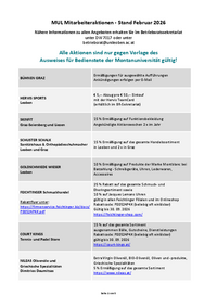 MUL Mitarbeiteraktionen - Stand Februar 2026 Nähere Informationen zu allen Angeboten erhalten Sie im Betriebsratssekretariat unter DW 7017 oder unter betriebsrat@unileoben.ac.at Alle Aktionen sind