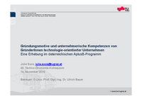 Motive und unternehmerische Kompetenzen von GründerInnen technologie-orientierter Unternehmen Technische Universität Graz Institut für Betriebswirtschaftslehre und Betriebssoziologie