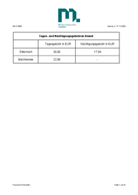 Q5.4 100/5 Version 2, 17.11.2025 Tages- und Nächtigungsgebühren Inland Tagesgebühr in EUR Nächtigungsgebühr in EUR Österreich 30,00 17,00 Bezirksreise 22,00 - Finance/ N.Schneller Seite 1
