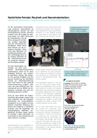 FORSCH U NG & PROJ EKTE | R ESEARCH & PROJ ECTS Natürliche Feinde: Rauheit und Nanoindentation Natural enemies: roughness and nanoindentation Für die mechanische Charakterisierung moderner