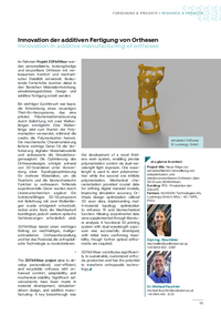 FORSCH U NG & PROJ EKTE | R ESEARCH & PROJ ECTS Innovation der additiven Fertigung von Orthesen Innovation in additive manufacturing of orthoses Im Rahmen Projekt 3DFit4Wear werden personalisierte,