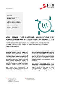 SUCCESS STORY ReWaste F Recycling and Recovery of Waste for Future Programm: COMET – Competence Centers for Excellent Technologies Förderlinie: COMET-Projekt Projekttyp: ReWaste F, 04/21 – 06/25,