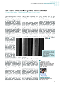 FORSCH U NG & PROJ EKTE | R ESEARCH & PROJ ECTS Verbesserte CFK durch Nanopartikel & Dünnschichten Enhanced CFRP via nanoparticles & thin films Kohlenstofffaserverstärkte Polymere (CFK) werden