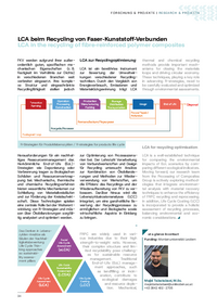 FORSCH U NG & PROJ EKTE | R ESEARCH & PROJ ECTS LCA beim Recycling von Faser-Kunststoff-Verbunden LCA in the recycling of fibre-reinforced polymer composites FKV werden aufgrund ihrer