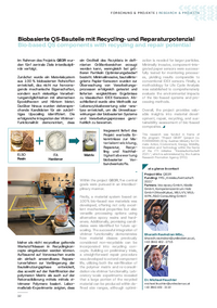 FORSCH U NG & PROJ EKTE | R ESEARCH & PROJ ECTS Biobasierte QS-Bauteile mit Recycling- und Reparaturpotenzial Bio-based QS components with recycling and repair potential Im Rahmen des Projekts QB3R