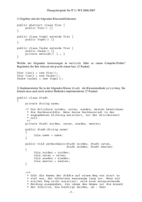Übungsbeispiele für IT 2 / WS 2006/2007 1) Gegeben sind die folgenden Klassendefinitionen: public abstract class Tier { public Tier() {} } public class Vogel extends Tier { public Vogel() {} } public