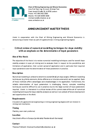 Chair of Mining Engineering and Mineral Economics Univ.Prof. Dipl.-Ing. Dr.mont. Michael Tost Franz Joseph Straße 18, A-8700 Leoben Phone: +43 3842 402 2000 Mobile: +43 664 80898 2000