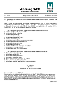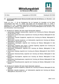 Mitteilungsblatt der Montanuniversität Leoben 140. Stück Ausgegeben am 09.06.2022 Studienjahr 2021/2022 211. Verordnung des Rektorats der Montanuniversität Leoben über die Auflassung von Ba chel