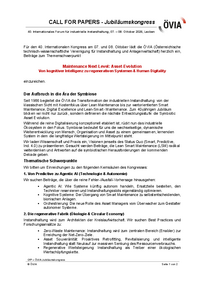 CALL FOR PAPERS - Jubiläumskongress 40. Internationales Forum für industrielle Instandhaltung, 07. – 08. Oktober 2026, Leoben Für den 40. Internationalen Kongress am 07. und 08. Oktober lädt die