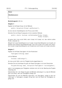 150.121 IT II – Vorlesungsprüfung 23.8.2012 Name: Matrikelnummer: Bearbeitungszeit: 120 min. Aufgabe 1 Gegeben ist die Klasse Firma mit der Methode public ArrayList < Firma > getPartner () , die