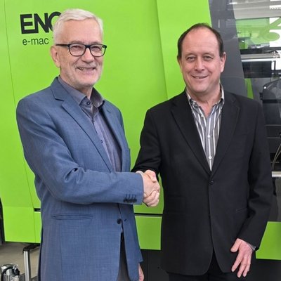 Offizielle Übergabe mit Handschlag Prof. Clemens Holzer und Werner Sucharda (Engel Austria GmbH) © Department Kunststofftechnik